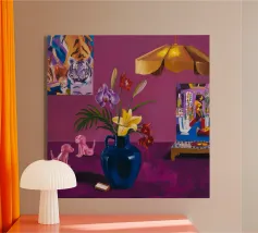Ik creëer multidimensionale kunstervaringen. Het dient ook als toegangspoort tot een verborgen digitale realiteit. Dit kan een subtiele animatie zijn die een personage tot leven brengt, een alternatief kleurverhaal dat de stemming verandert, of een interactief element dat een verborgen boodschap onthult. Door het tijdloze ambacht van schilderen op doek te laten samensmelten met opkomende technologie, wil ik een meer meeslepende relatie met kunst creëren, waarbij het verhaal nog lang na je eerste blik doorgaat.