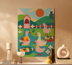 We gebruiken jouw ontwerp - in met de hand gemaakte lijsten. Klaar om op te hangen.