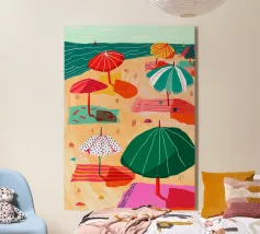 Breng de zomerse sfeer in huis met dit prachtige acrylglas schilderij van Isabelle Vandeplassche. Perfect voor elke kamer en een geweldige aanvulling voor strand- of buitenliefhebbers.