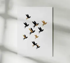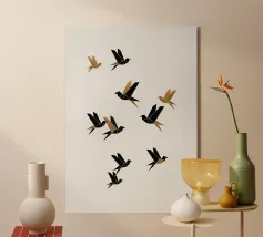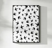 Zwaluwen vogels zwart silhouet op witte achtergrond acryl