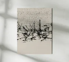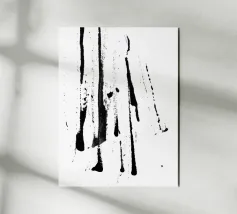 Modern en minimalistisch abstract met lijnen en verfspatten.