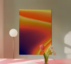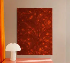 Abstract dynamisch golfpatroon in oranje en rood aluminium-dibond
