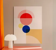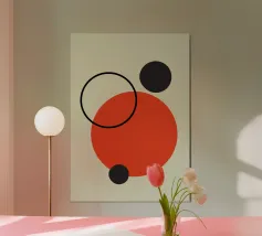 Omarm de esthetiek van modern design met deze opvallende geometrische abstracte kunstprint. Met een fascinerende compositie van twee grote overlappende cirkels in contrasterende kleuren tegen een achtergrond van effen kleurblokken (lichtroze en magenta/donkerroze). Dit kunstwerk maakt gebruik van eenvoudige geometrische vormen en felle kleurcontrasten om een visueel boeiend abstract stuk te creëren, waarin de interactie van vormen en tinten wordt onderzocht. Dit digitale kunstbestand van hoge kwaliteit heeft een verbluffende resolutie van 7000 x 5000 pixels bij 300 dpi, wat zorgt voor uitzonderlijke details en helderheid voor je posterprint. Een perfect stuk voor des