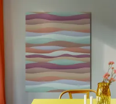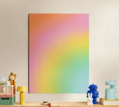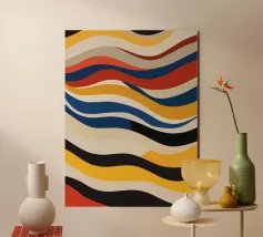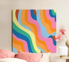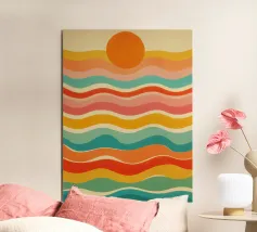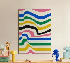 Een vrolijk en expressief abstract golvend patroon met vloeiende, golvende lijnen in een retro regenboog-geïnspireerd palet - van zacht oranje en warm roze tot gedurfd turquoise, aqua, geel en rood - allemaal zachtjes gelaagd op een warme ivoorkleurige achtergrond. Dit minimalistische maar impactvolle ontwerp viert de schoonheid van verschillen en de harmonie die gevonden kan worden in diversiteit. Een opvallend en opbeurend stuk dat trots, gelijkheid en zelfexpressie eert - perfect voor muurkunst, huisdecoratie en alledaagse accessoires die individualiteit en een kleurrijk ritme omarmen.
