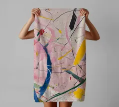 Dit abstracte acrylschilderij vangt de dynamische energie van de action painting-techniek, geïnspireerd door Pollock. Levendige kleurspatten in rood, geel, blauw en wit creëren vloeiende lijnen en complexe patronen die beweging en diepte overbrengen.