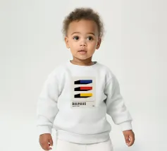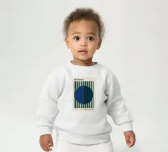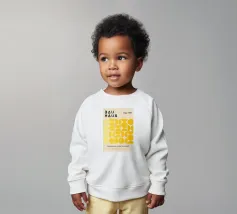 Onze baby sweatshirts bestaan uit 85% biologisch katoen en 15% gerecycled polyester.