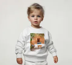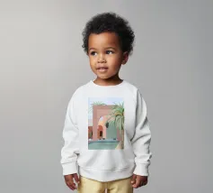 Onze baby sweatshirts bestaan uit 85% biologisch katoen en 15% gerecycled polyester.