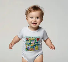 Alle babyrompers met korte mouwen worden geproduceerd en bedrukt door onze lokale betrouwbare partner.