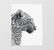 Dit krachtige motief toont het profiel van een luipaard in een gedetailleerde zwart-witafbeelding. De fijne vachttexturen en expressieve ogen benadrukken de elegantie en kracht van dit fascinerende roofdier. Ideaal als muurschildering, kussen of mobiele telefoonhoes om een dynamische en exotische sfeer toe te voegen aan elke kamer. Perfect voor liefhebbers van wilde dieren en moderne natuurfotografie die een stukje wilde natuur in huis willen halen.