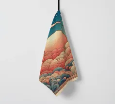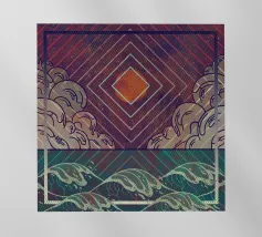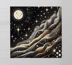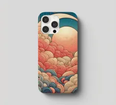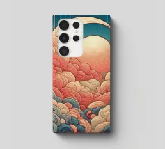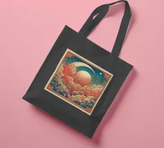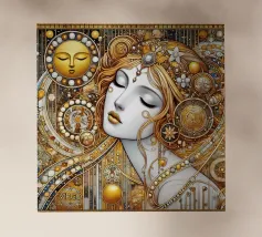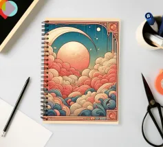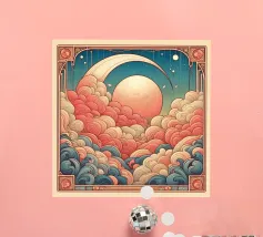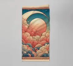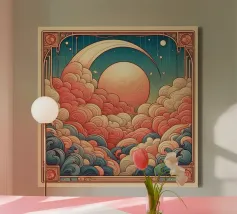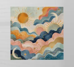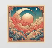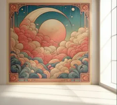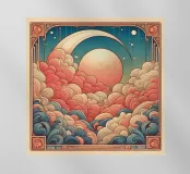Zon, maan en roze-blauwe wolken in een betoverend Art Nouveau ontwerp.