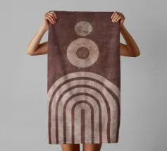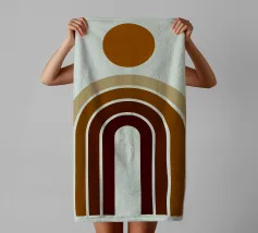 Breng warmte en evenwicht in je ruimte met dit abstracte geometrische kunstwerk met een zon- en boogontwerp in aardetinten. De minimalistische retro-esthetiek voegt een tijdloze, rustgevende touch toe aan elk interieur. Perfect voor een moderne, bohemien of Scandinavisch geïnspireerde inrichting.