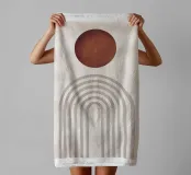 Dit abstracte ontwerp in warme aardetinten heeft een gestileerde zon boven een zacht boogpatroon dat een rustgevende en harmonieuze sfeer creëert. De minimalistische combinatie van ronde en lineaire vormen geeft elke kamer een moderne boho-esthetiek en straalt tegelijkertijd rust en helderheid uit. Als muurschildering, mok, kussen of mobiele telefoonhoes - dit motief is perfect voor liefhebbers van moderne, minimalistische kunst die een natuurlijke en stijlvolle toets aan hun huis willen geven. Ideaal voor de woonkamer, slaapkamer of kantoor.