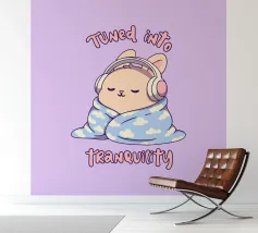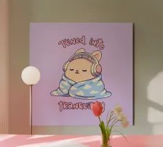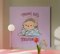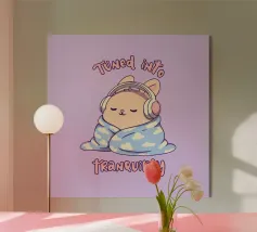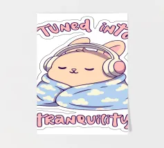 Een schattig konijntje gewikkeld in een wolkendeken luistert naar ASMR met een uitdrukking van pure rust. Het kunstwerk vertegenwoordigt dat moment waarop de wereld stil valt en alleen het geluid van troost overblijft. Ideaal voor liefhebbers van ASMR, schattigheid en prints die rust uitstralen met een geeky en dromerig tintje.