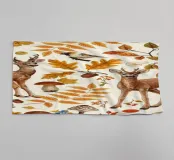 Geniet van de serene schoonheid van dit geschilderde herfstpatroon met herten, kleurrijke bladeren en bessen,