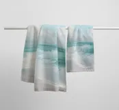 Deze prachtige digitale kunstdruk vangt de vredige rust van een zeegezicht aan de kust. De afbeelding toont zachte, schuimende oceaangolven die zachtjes op een zandstrand rollen onder een uitgestrekte, serene lucht met pluizige wolken. Het kleurenpalet is een harmonieuze mix van gedempte wintertalingen, zacht blauw en romig wit, waardoor een rustgevende, dromerige sfeer ontstaat. Deze hoogwaardige digitale poster (7000x5000 pixels, 300 dpi) getuigt van superieure kunstzinnigheid en is perfect om een vleugje serene kustcharme en minimalistische elegantie toe te voegen aan elke woonruimte.