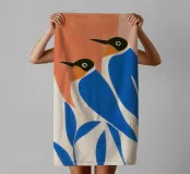 Een poëtisch duet van vorm en kleur: twee sterk gestileerde vogels rusten op blauwe bladeren voor een warme zonsondergang. De heldere geometrische lijnen en het gereduceerde kleurenpalet doen denken aan de silhouetten van Matisse en Scandinavisch grafisch design. De compositie straalt rust, nabijheid en prachtige grafische elegantie uit - een modern beeld van de natuur dat zowel decoratief als contemplatief is. Ideaal voor lichtgekleurde kamers die visuele harmonie moeten uitstralen.