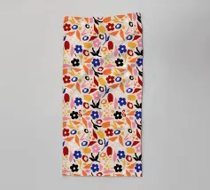 Een vrolijk en speels naadloos patroon van abstracte organische vormen, regenbogen en lijnen in een zacht, primair geïnspireerd kleurenpalet. Het ontwerp zit vol beweging en vrolijke energie.