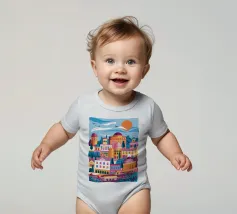 Alle babyrompers met korte mouwen worden geproduceerd en bedrukt door onze lokale betrouwbare partner.