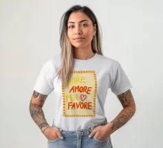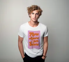 Meer Amore Per Favore. Dit ontwerp roept op tot meer liefde voor deze wereld in het Italiaans.