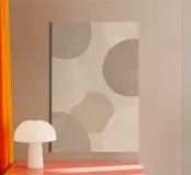 Abstracte beige cirkels op licht beige achtergrond canvas met Baklijst