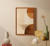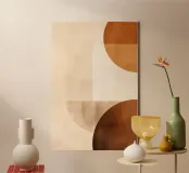 Abstracte vormen in bruine tinten canvas met Baklijst