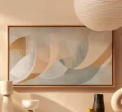 Abstracte vormen in zachte tinten canvas met Baklijst