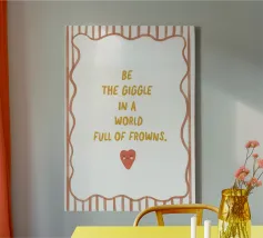 Vier individualiteit met onze levendige typografische print "Be a Fruitloop in a World of Cheerios". Deze speelse boodschap komt tot leven in prachtige handgeschilderde regenboogkleurige waterverfletters, die prachtig afsteken tegen een helderwitte achtergrond. Dit vrolijke ontwerp is perfect voor kinderkamers, babykamers of elke andere ruimte die een vleugje kleur en positiviteit nodig heeft en moedigt aan om uniek te zijn. De grillige, artistieke stijl spreekt zowel kinderen als volwassenen aan, waardoor het een veelzijdige aanvulling is voor elk huis. Laat deze inspirerende print je ruimte opfleuren en zelfvertrouwen uitstralen!