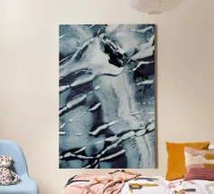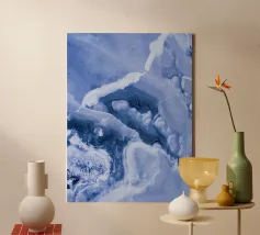 Dit unieke ontwerp heeft een close-up van verbrijzeld ijs in een betoverende, koele blauwe tint. De abstracte vormen en gedetailleerde texturen vangen de schoonheid van de natuur in haar puurste vorm. Perfect als muurschildering, mok, mobiele telefoonhoes of kussen - dit motief brengt de koele elegantie en moderne esthetiek van winterlandschappen in elk huis. Ideaal voor liefhebbers van abstracte kunst en minimalistische natuurmotieven.
