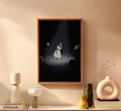 We zetten jouw ontwerp in - in met de hand gemaakte lijsten. Klaar om op te hangen.