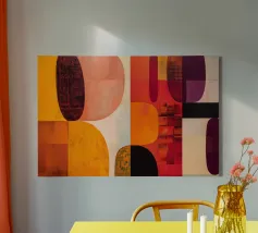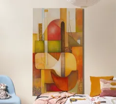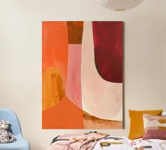 Een gedurfde verkenning van structuur door middel van levendige abstractie. Deze dynamische compositie, gedomineerd door lagen karmozijnrood, oranje en koraal, combineert geometrische vormen met expressieve penseelvoering, waardoor een ritmische energie ontstaat die architectonisch en toch emotioneel aanvoelt. Het samenspel van scherpe hoeken en zachte verlopen roept beweging, warmte en vitaliteit op - een opvallend middelpunt voor elke moderne ruimte.