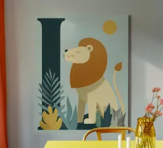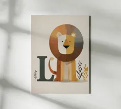 Deze charmante minimalistische illustratie toont een kalme leeuw met een kleine kroon en kleurrijke manen, die warmte en rustig vertrouwen uitstraalt. Met zijn eenvoudige lijnen en moderne kleurenpalet geeft het kunstwerk de zachte kracht van de koning van de jungle weer - perfect voor kinderkamers of vrolijke hedendaagse interieurs.