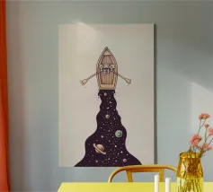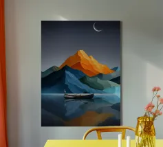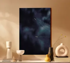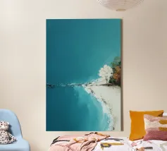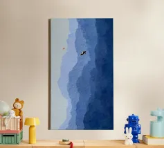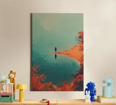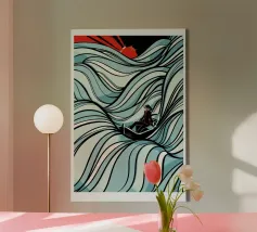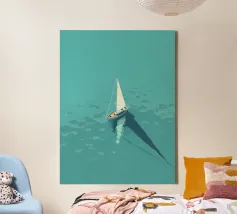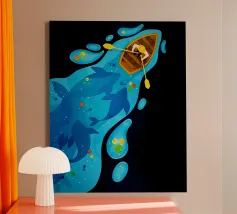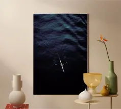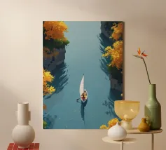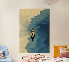 Een eenzame figuur zweeft tussen stilte en stroming. Drift Lines vangt het moment waarop verkenning overgaat in meditatie. De scherpe grafische lijnen ontmoeten vloeiende verlopen, waardoor een delicaat evenwicht van structuur en rust ontstaat. Van bovenaf gezien wordt de boot een symbool - van richting, introspectie en ruimte. Ideaal voor moderne ruimtes die op zoek zijn naar helderheid, minimalisme en een vleugje poëtisch mysterie.