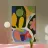 Een abstract kunstwerk met gefragmenteerde menselijke gezichten vermengd met gedurfde, kleurrijke vormen. Het werk verkent identiteit en emotie door middel van een dynamische en gedeconstrueerde beeldtaal.