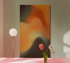 De afbeelding toont abstracte geometrische patronen in de kleuren oranje en geel.