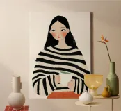 Gezellige Stripe Serenity: Minimalistisch Koffie Portret canvas
