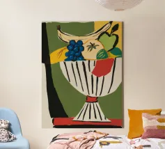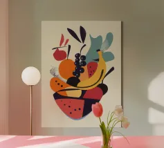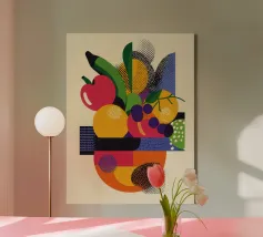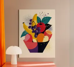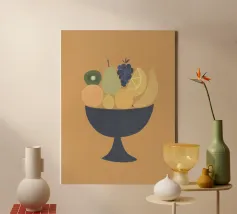 "Grape Array: Diversity in a Glass" toont een levendige verzameling druiven genesteld in een strak wijnglas, symbool voor harmonie in diversiteit. Dit opvallende stuk viert de schoonheid van verscheidenheid en eenheid door de kleurrijke overvloed van de natuur.