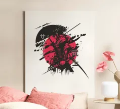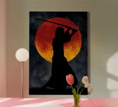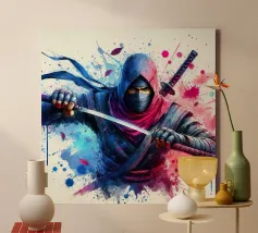 Deze spannende illustratie toont Hattori Hanzo als een vastberaden ninja in klassieke zwarte kleding, met een getekende katana en werpster. Als legendarische spion en lijfwacht van de Tokugawa stond hij bekend om zijn sluwheid, stealth en dodelijke precisie. De rode cirkel op de achtergrond doet denken aan de Japanse vlag en versterkt het visuele effect. Een ideaal motief voor fans van samuraiverhalen, ninja-mythen of de Japanse popcultuur. Het werk symboliseert vaardigheid, loyaliteit en stille efficiëntie - perfect voor iedereen die van subtiele helden houdt.