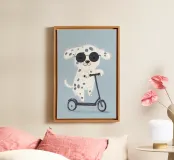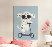 Kinderbedrukking, Dalmatiër Illustratie Schattige Puppy Scooter canvas met Baklijst