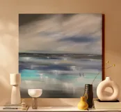 This abstract seascape captures the movement, depth and atmosphere of the ocean in a modern, timeless form. Flowing structures and nuanced colours are reminiscent of water, wind and light in transition and convey tranquillity, vastness, longing and freedom. The minimalist seascape creates a meditative mood and blends harmoniously into modern living spaces, Scandinavian interiors or minimalist furnishings. Ideal for anyone who loves abstract art, maritime motifs and timeless wall art.