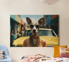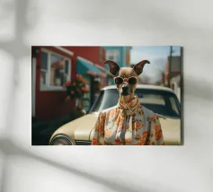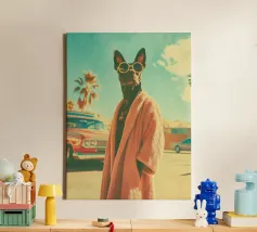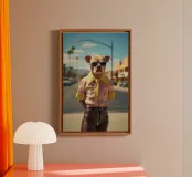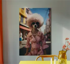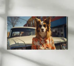 Absurde composities met mensenhonden. Mensenhonden die, net als wij, in Parijs, Los Angeles of Londen wonen en die, net als wij, gepassioneerd zijn door mode, auto's of helemaal niets. Honden die gedesillusioneerd, geamuseerd of geliefd zijn. Hippies en getatoeëerde honden. Kortom, honden die net als wij zijn. Of zijn wij zoals zij? Duik in de artistieke wereld van Dogland, een exclusieve collectie gewijd aan iedereen die zijn hond als een lid van de familie beschouwt. Hier is elke hondenposter een kunstwerk bedacht met humor, tederheid of elegantie. Of je nu een fan bent van buldoggen, teckels of corgi's, je zult de muurposter vinden die je huis zal laten blaffen van geluk. Geef je muren een honds accent met originele illustraties, afgedrukt op kwaliteitspapier, klaar om je interieur te sublimeren. Dogland is meer dan een winkel: het is een liefdesverklaring aan honden.