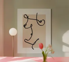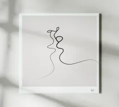 Dit abstracte kunstwerk toont een ononderbroken vloeiende lijn die organische, verstrengelde vormen vormt op een zachtbeige achtergrond. De minimalistische esthetiek creëert een kalm, modern beeld dat ideaal is voor eigentijdse interieurs. Geleverd als een superieur digitaal bestand (7000×5000 px, 300 dpi) met uitstekende precisie en gladde textuur.