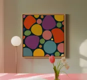 Mid-century Pop-Art Inspired Abstract Pattern canvas met Baklijst