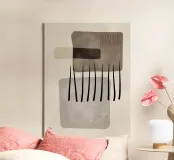 Abstracte digitale kunst met lijnen, organische en geometrische vormen met textuur en zwarte penseelstreken in zachte aardetinten van bruin en beige. Moderne kunst voor een basic, Scandinavisch, bohemien en boho interieur. Geniet van minimalistische digitale kunst met zachte vormen en lijnen.