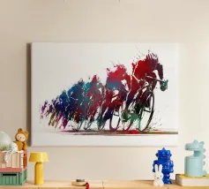 Breng energie en kleur in je interieur met de "Multiple Cyclists" canvas van Andy Bridge! Deze prachtige kunstprint met dynamische fietsers in levendige kleuren is perfect voor de sportieve koffiekamer of de slaapkamer van een fietsliefhebber. Het unieke ontwerp inspireert beweging en avontuur, en maakt het een ideaal cadeau voor elke gelegenheid. Hang het op als statement piece of combineer het met andere kunstwerken voor een frisse, moderne uitstraling. Deze canvas is niet alleen stijlvol, maar ook makkelijk te onderhouden – een echte aanwinst voor elke woning!