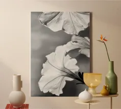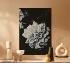 Ondergedompelde bloemblaadjes: Een symfonie van monochrome schaduwen en licht canvas