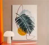 palmblad minimalistische vormen abstracte elementen zwarte palm canvas met Baklijst