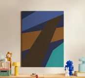 Retro geometrisch ontwerp in blauw, bruin en zeegroen canvas