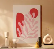 Rood en Roze Abstracte Botanische Kunst canvas met Baklijst