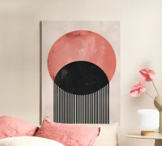 Roze & Zwarte Cirkels Abstracte Kunstdruk - Minimalistisch Evenwicht canvas