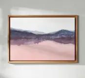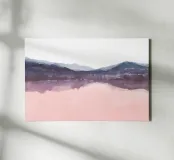 Roze en indigo aquarel uitzicht op meer canvas met Baklijst